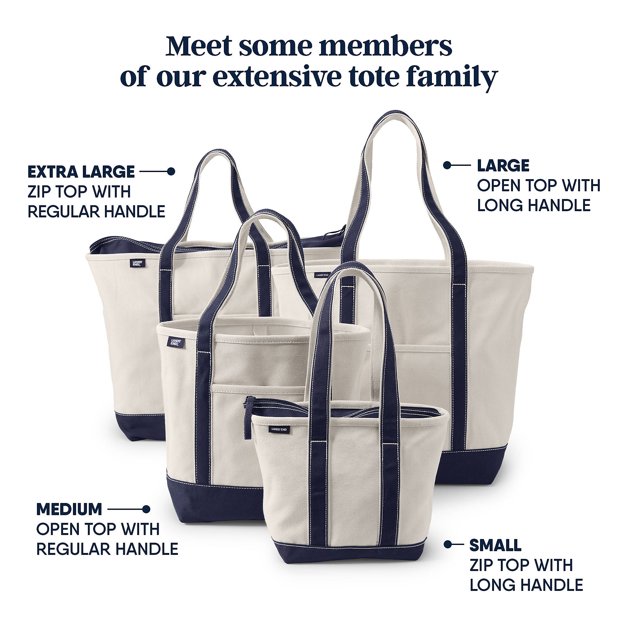 Our iconic Canvas Tote withstands the test of time because of the details we build into its genius design. Rugged cotton canvas makes it endlessly durable while the bottom and handles are reinforced so it can support a heavy load, making it perfect as a beach bag, to carry your laptop - whatever you require. Pockets inside keep your smaller items easy to find and secure. Neatly-stitched seams give it a clean look. To begin building your best tote, choose from the available options and we'll refine them for you as you go. Small: 1312"Wx512"Dx9"H; bottom 812"W; handle drop 412" (long handle drop 9")Medium: 17"Wx6"Dx1312"H; bottom 12"W; handle drop 9" (long handle drop 14")Large: 2212"Wx912"Dx17"H; bottom 1412"W; handle drop 9" (long handle drop 14")Extra Large: 26"Wx1014"Dx1712"H; bottom 17 1/8"W; handle drop 914" (long handle drop 1414")