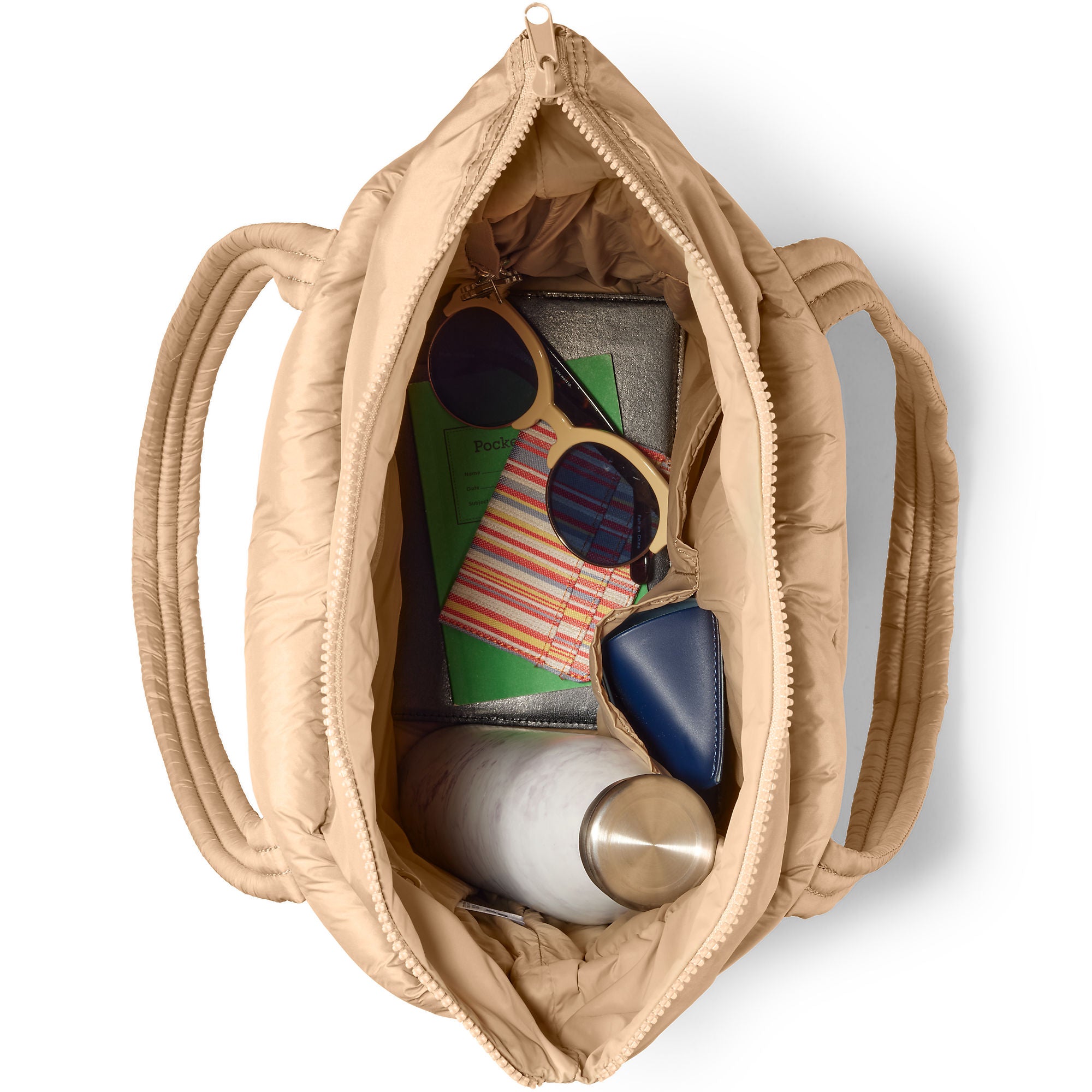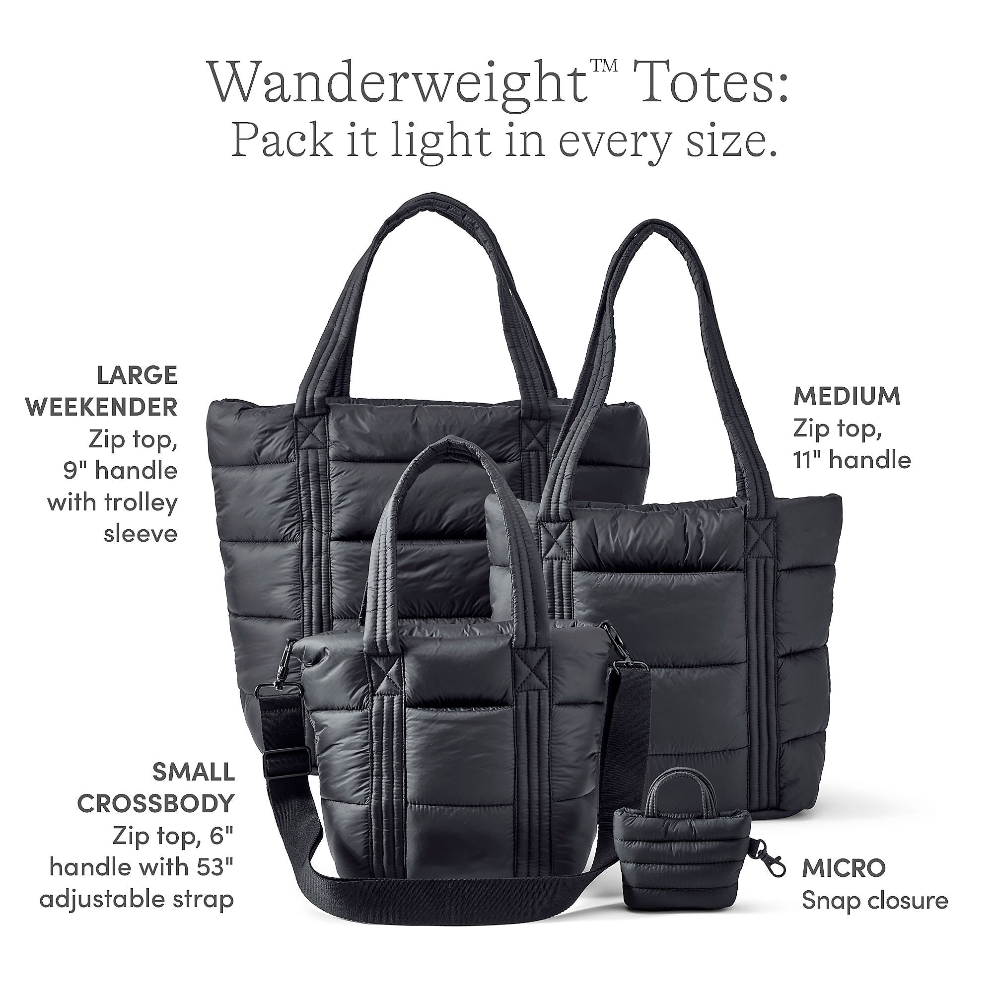 This ultralight yet surprisingly spacious tote is inspired by our Wanderweight outerwear. The water-resistant quilted shell (filled with synthetic insulation) keeps your items dry inside. It features plenty of pockets both inside and out. Plus, in a blink, it folds into its own zippered pocket. It's easy to pack and ready to go whenever you are. Good things do come in small packages.