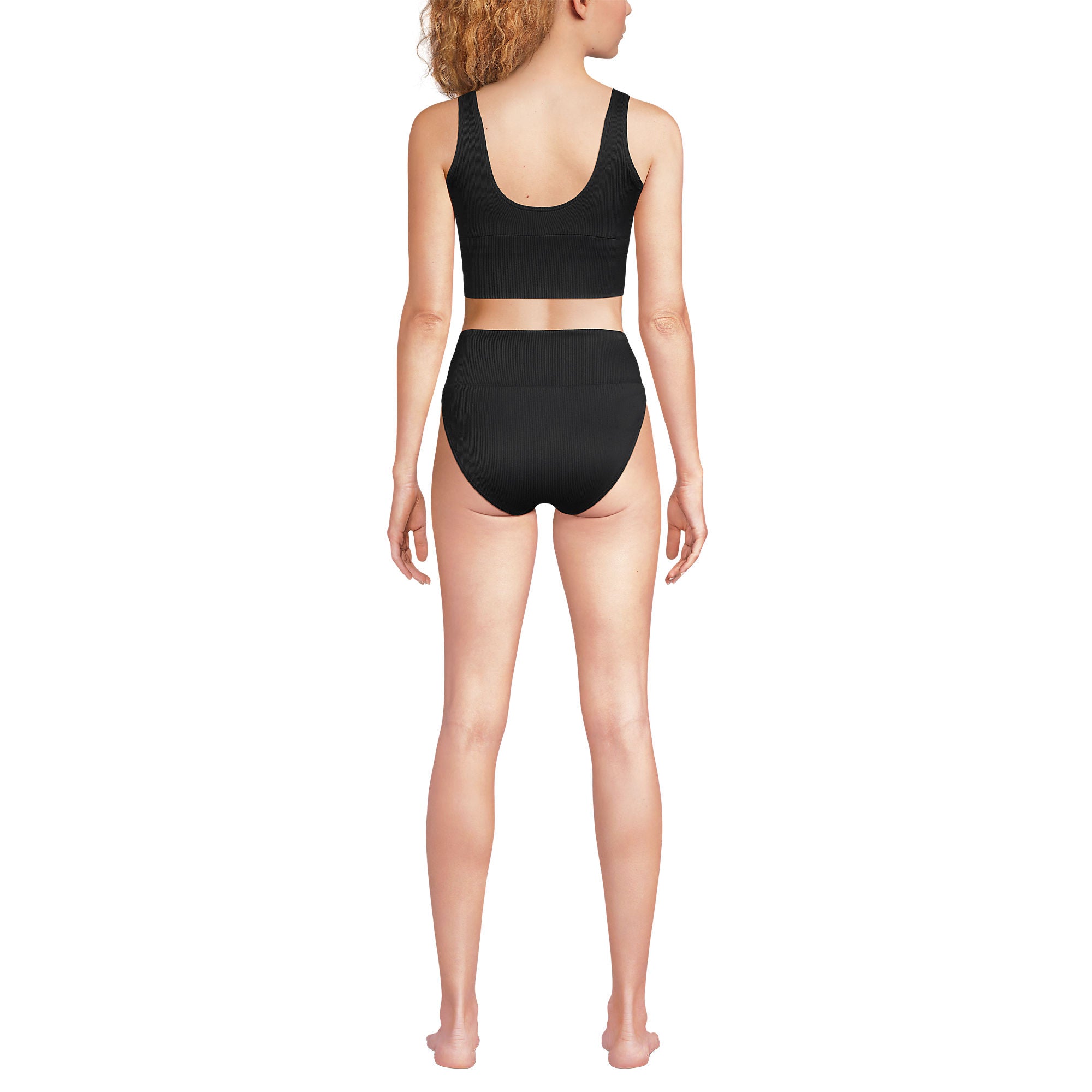 The legendary stay-put fit you know and love is now available in a two-piece set. The midkini top features a simple scoop neck and back and a sewn-in soft cup bra for plenty of support. The bottoms have a flattering high waist style. And the rib fabric adds a touch of interest. Wear them together or mix them with other swim separates to create more looks.