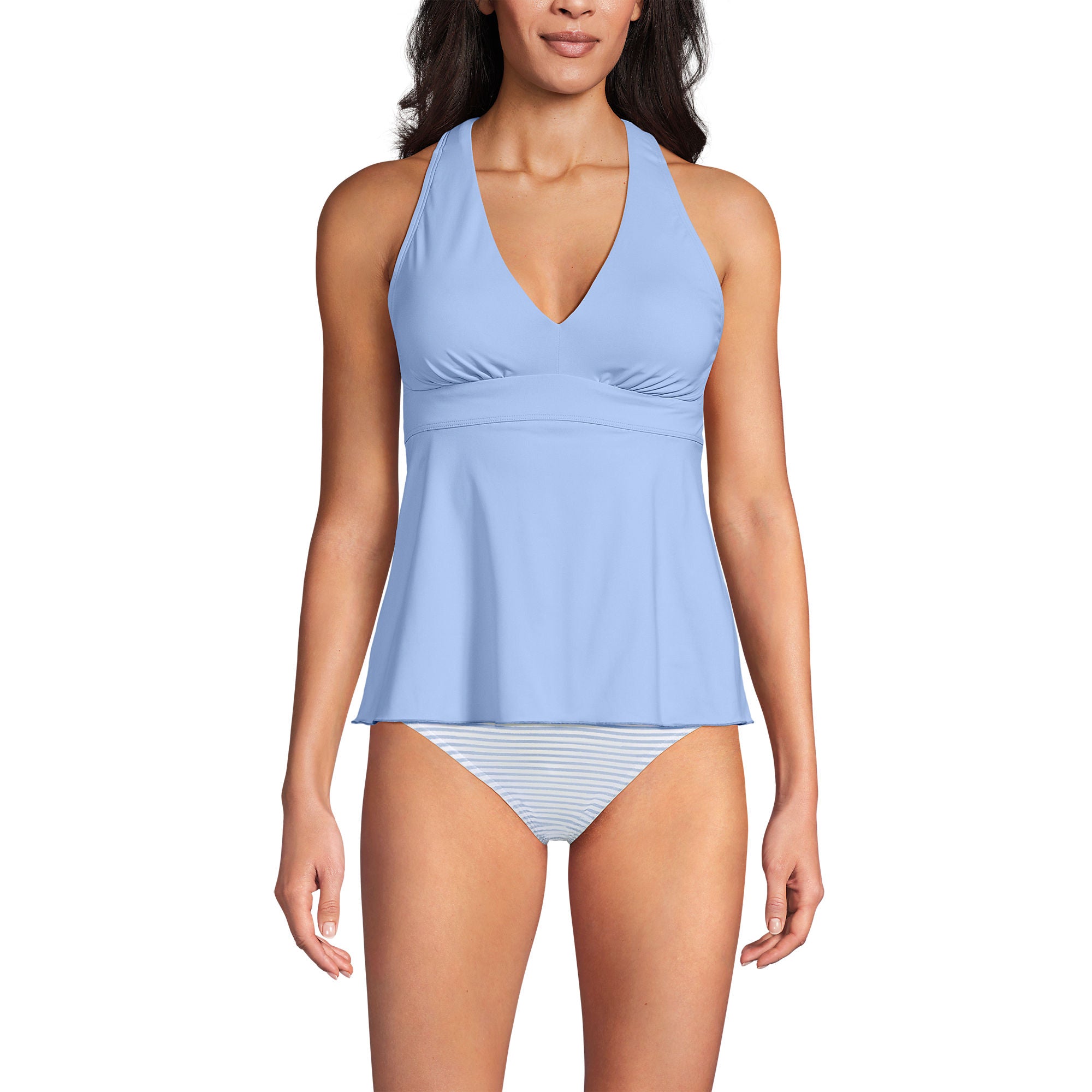 A new tummy-friendly favorite for your swim rotation, this tankini blends support and softness in all the right places. The racerback detail keeps everything comfortably in place, while the V-neck adds a feminine touch. With a flowy, camouflaging design, it's the best of both worlds, giving you confidence and comfort in one effortless style.