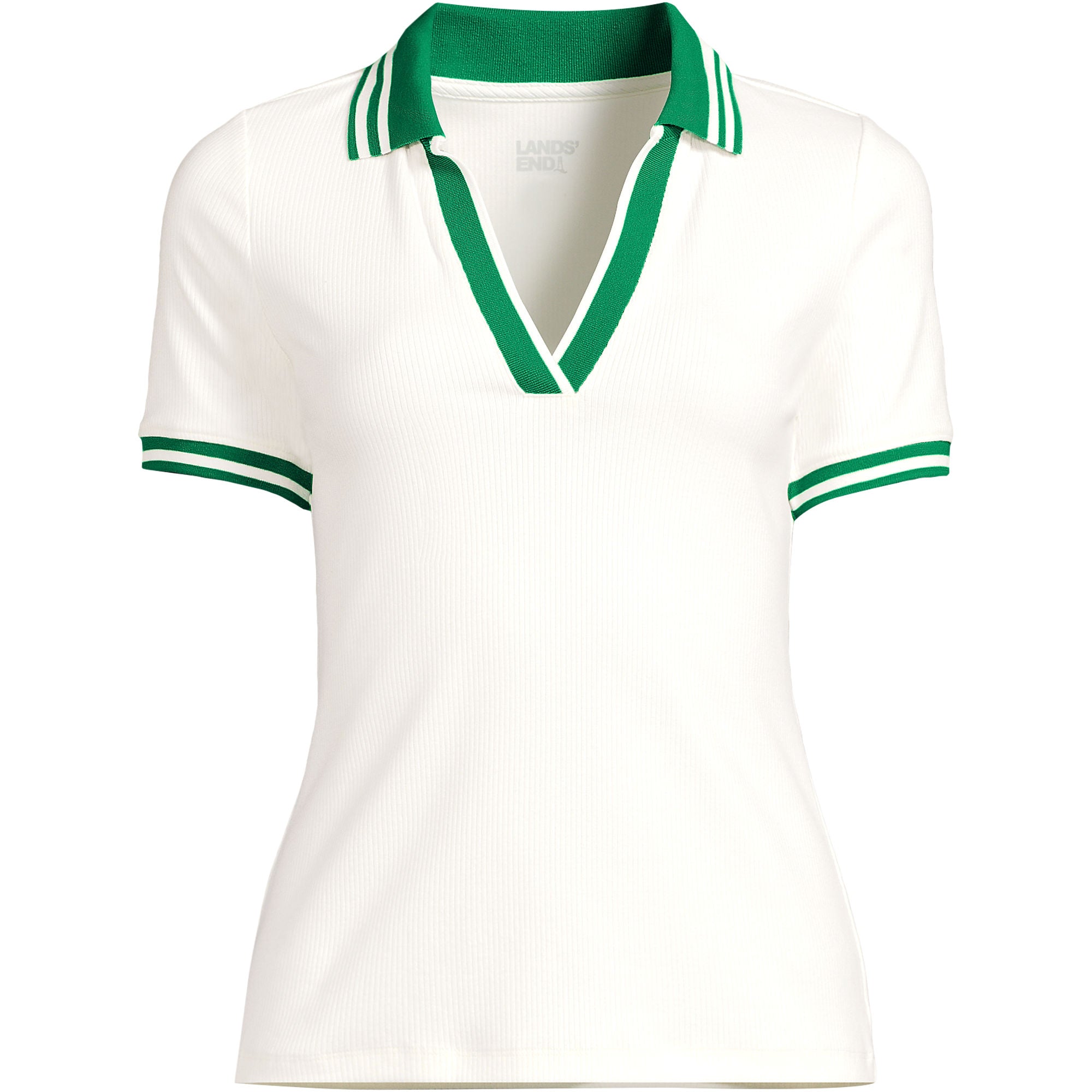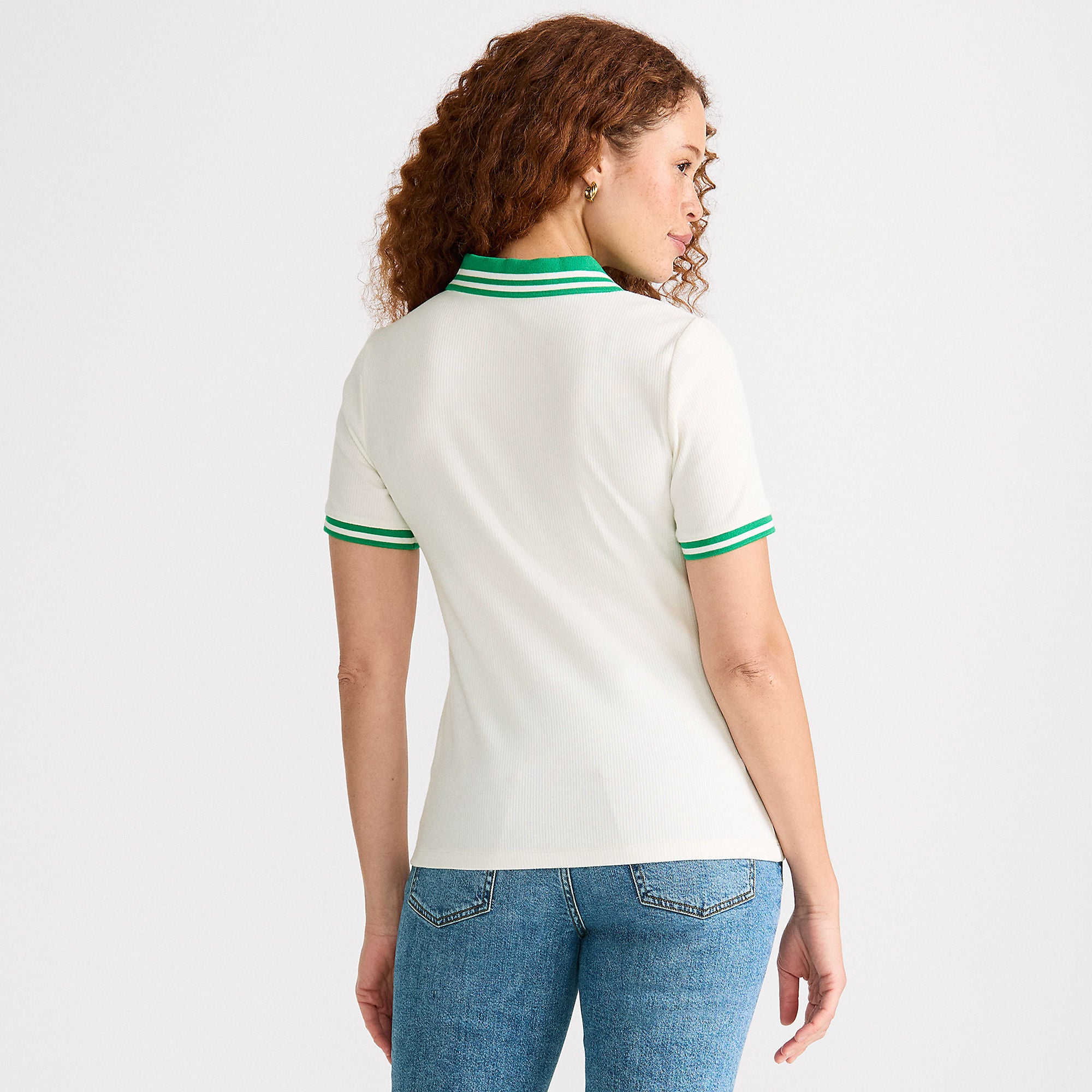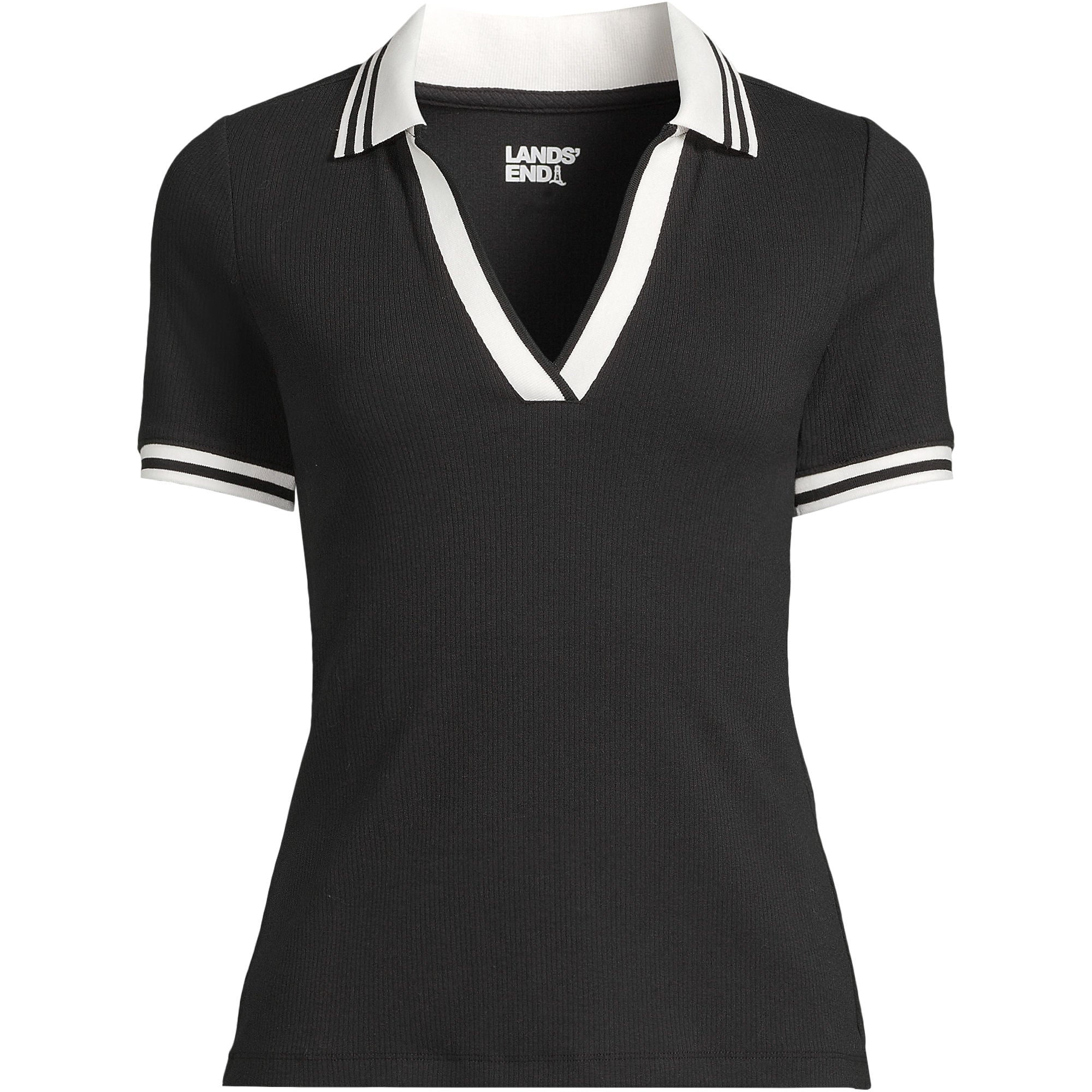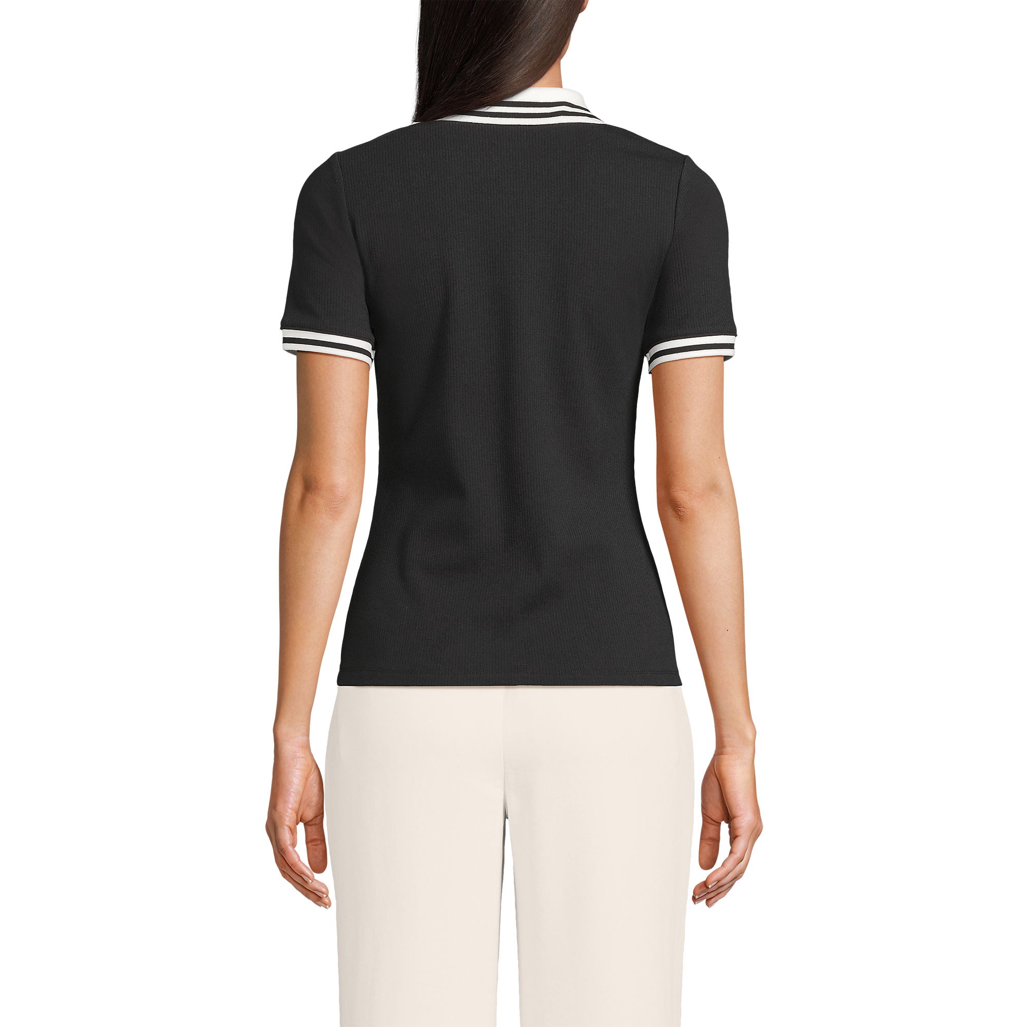 Here's a fresh take on your go-to casual top: a sleek, slim fitting polo. It features a flat knit collar and an open placket with matching trim on the short sleeves. Made of soft cotton with a hint of stretch, it offers a comfortable fit without clinging. This versatile polo can be tucked into pants or worn loose for a laid-back look.